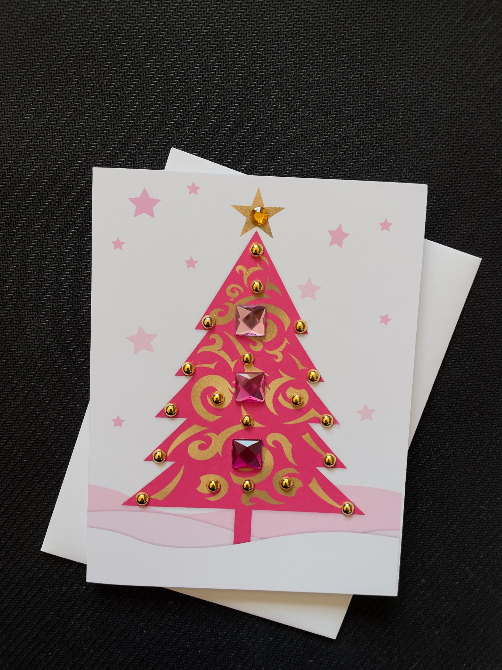 Pink Christmas Tree Greeting Card with Star