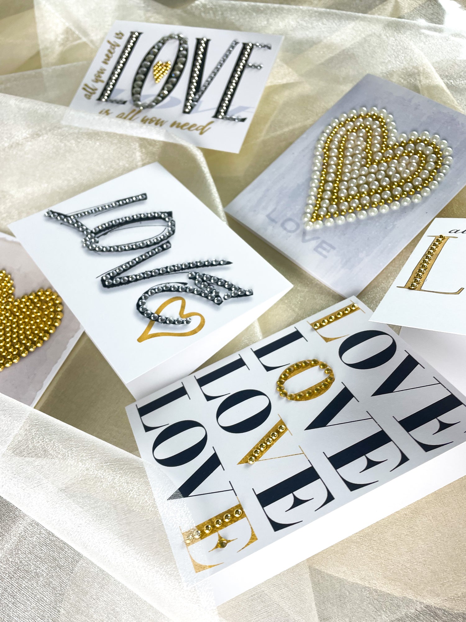 These cards are hand made and one of kind, so what you see may not be what you'll get. Each card is made with its own unique flare. Jewel style, design and colour may vary. They are blank inside so you can add your own personal touch!