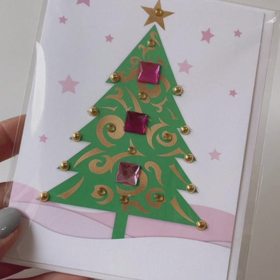Green Christmas Tree Greeting Card with Gem Embellishments