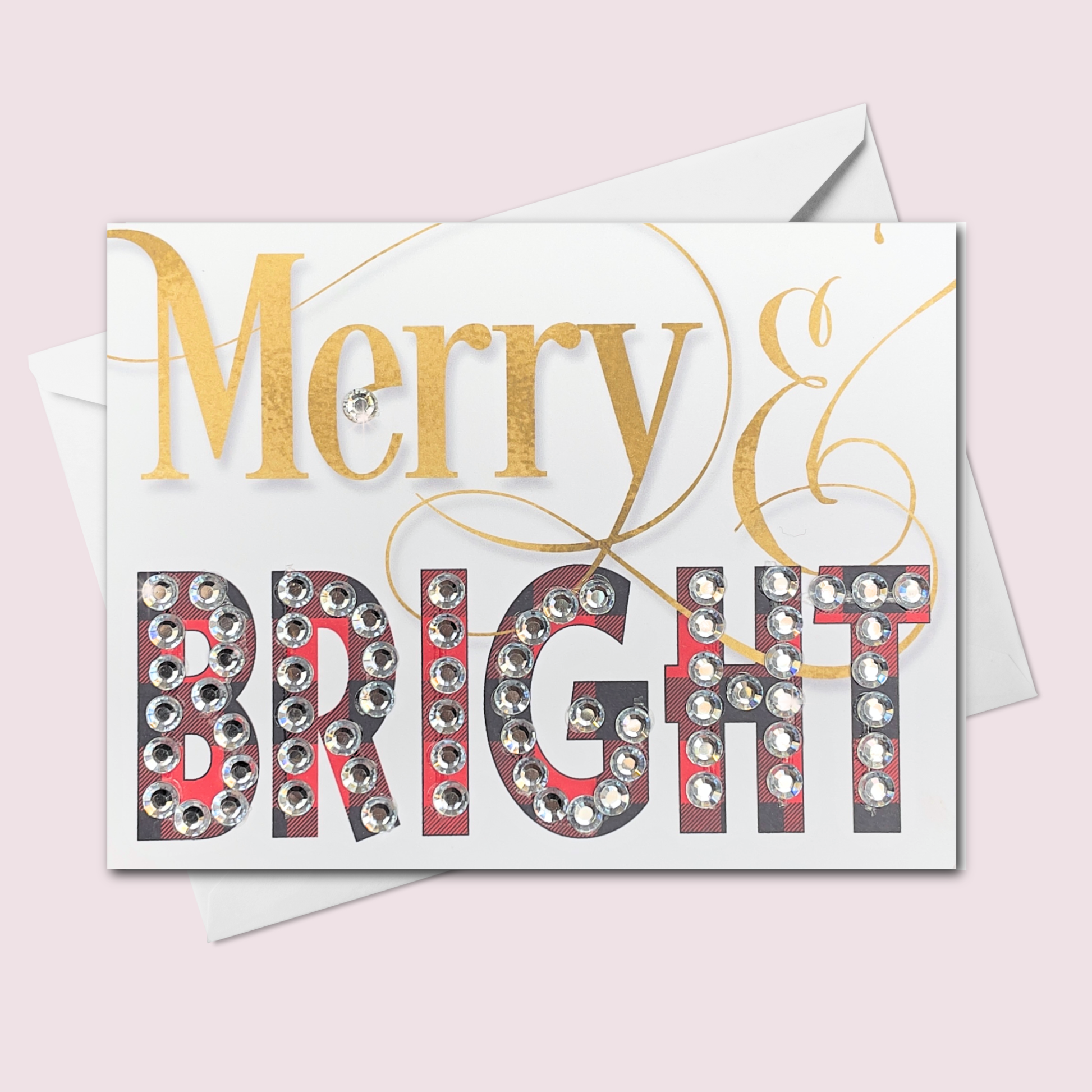 Merry Christmas - Merry & Bright! Red Plaid Greeting Card