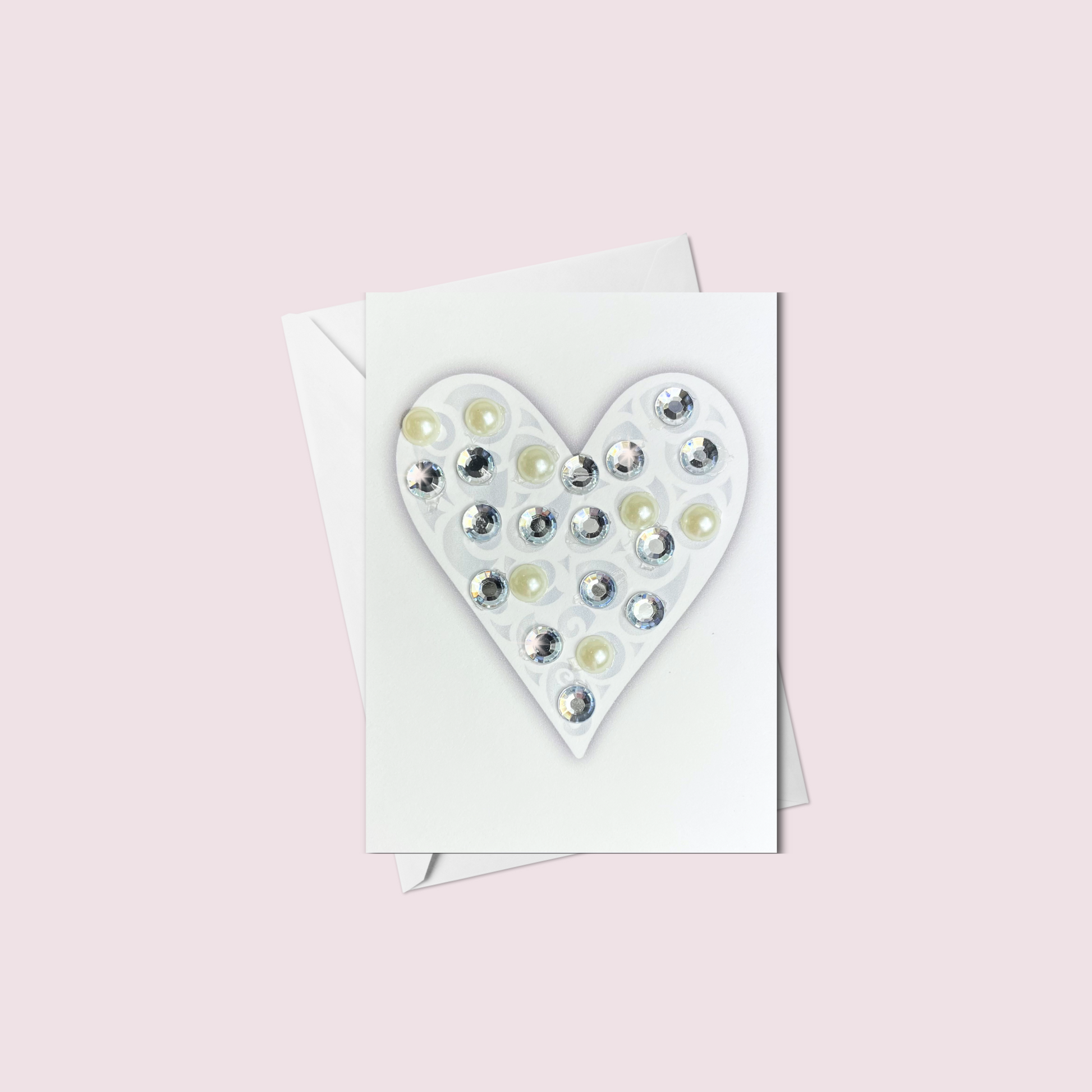 Mini White Sparkly Heart Greeting Card